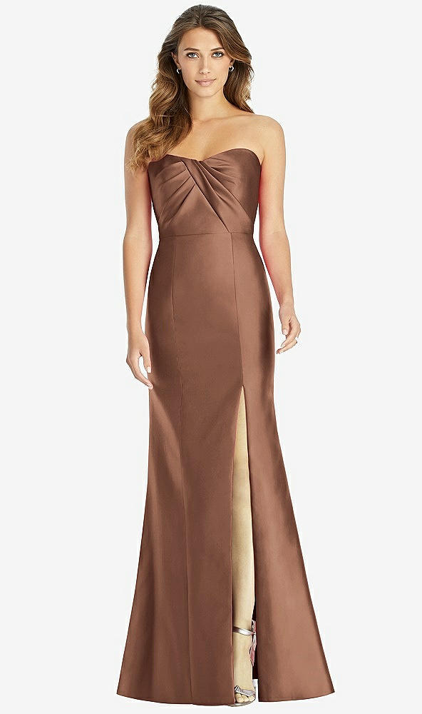 Front View - Cognac Strapless Draped Bodice Trumpet Gown