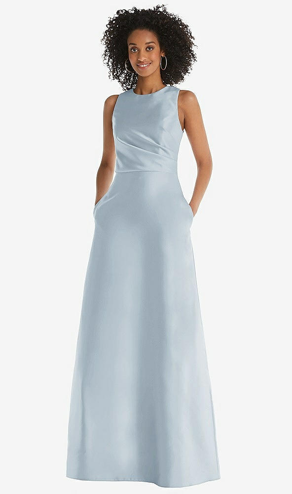 Front View Thumbnail - Mist Jewel Neck Asymmetrical Shirred Bodice Maxi Dress with Pockets