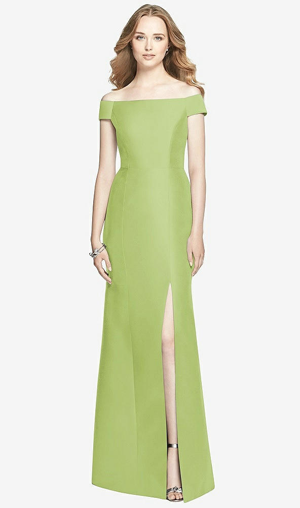 Off-the-Shoulder Criss Cross Back Satin Dress in Mojito