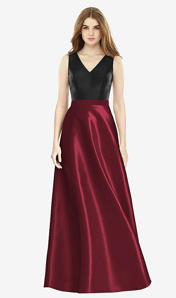 Front View - Cabernet & Black Sleeveless A-Line Satin Dress with Pockets