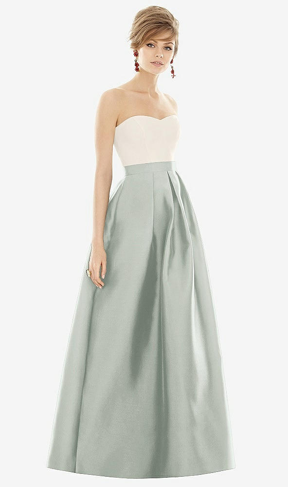 Strapless Pleated Skirt Maxi Dress with Pockets in Willow Green & Ivory