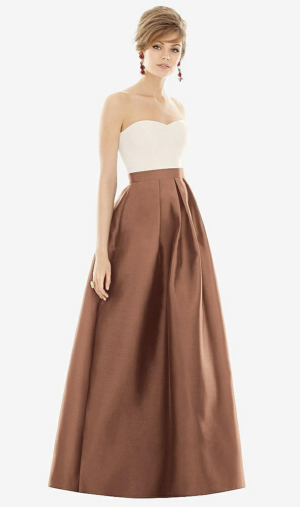 Front View - Cognac & Ivory Strapless Pleated Skirt Maxi Dress with Pockets