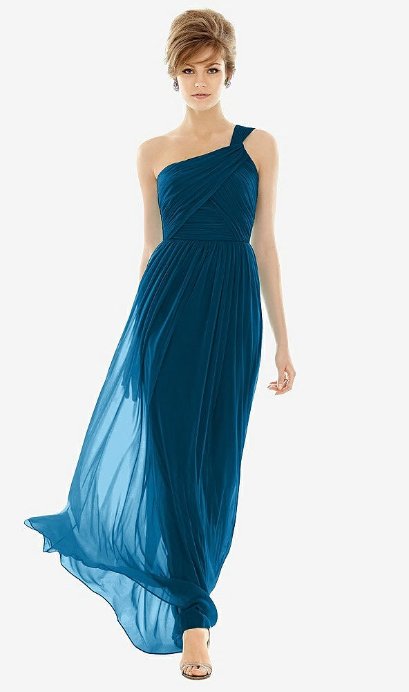Front View - Ocean Blue One Shoulder Assymetrical Draped Bodice Dress