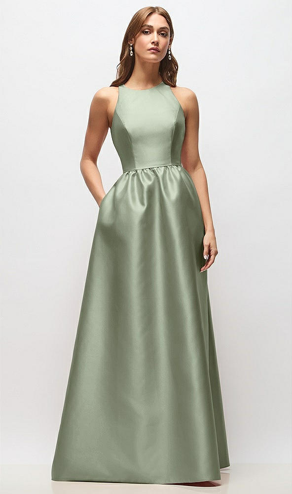 Sleeveless Keyhole Back Satin Maxi Dress in Sage