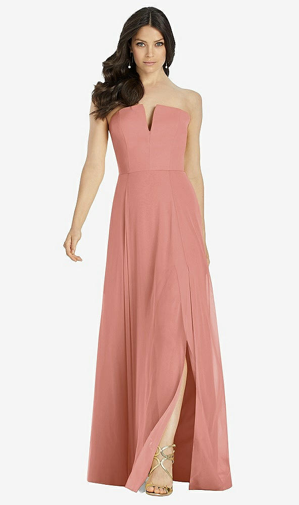 Front View - Desert Rose Strapless Notch Chiffon Maxi Dress