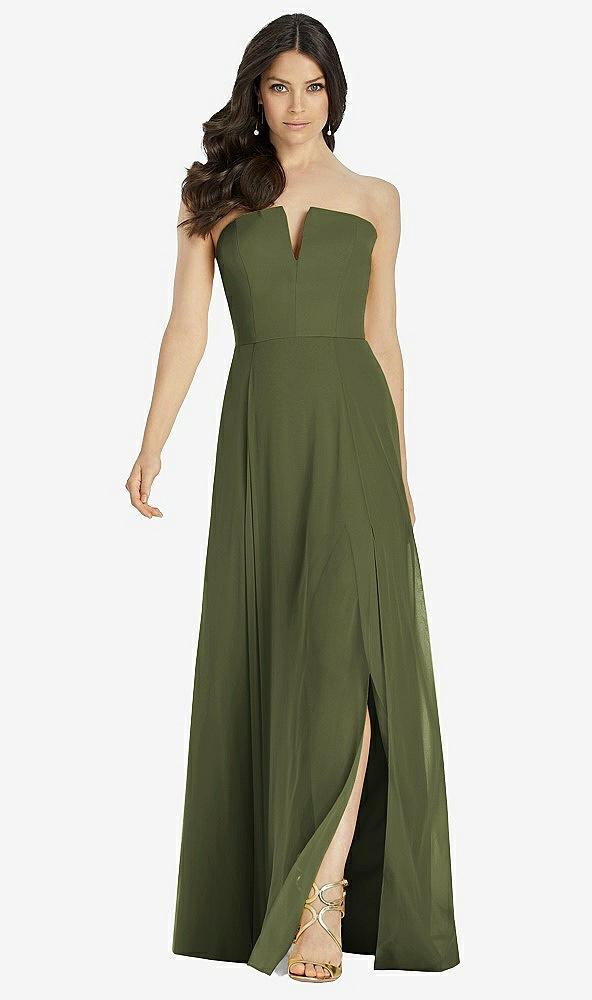 Front View - Olive Green Strapless Notch Chiffon Maxi Dress