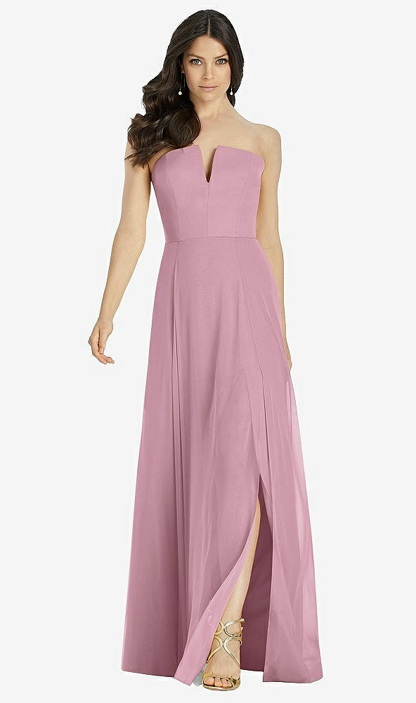 Front View - Dusty Pink Strapless Notch Chiffon Maxi Dress