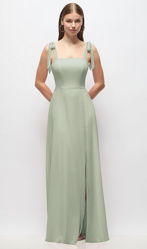 Tie-Shoulder Chiffon Maxi Dress with Front Slit in Celadon