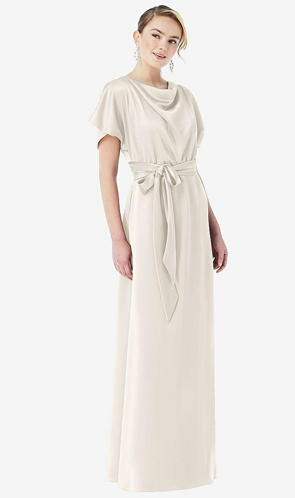 Side View - Ivory Cowl-Neck Kimono Sleeve Maxi Dress with Bowed Sash