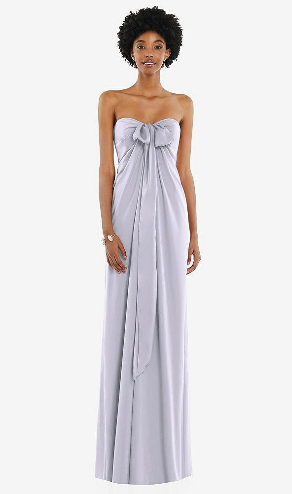 Draped Satin Grecian Column Gown with Convertible Straps in Silver Dove