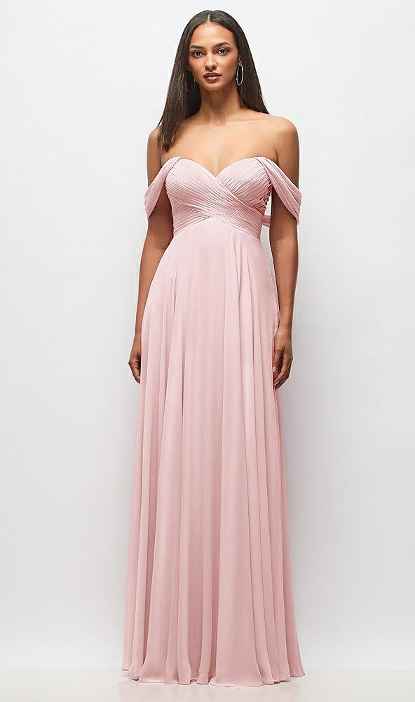 Off-the-Shoulder Draped Chiffon Maxi Dress in Ballet Pink