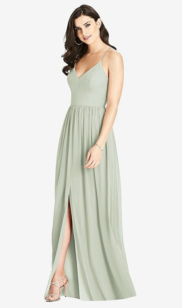 Simple and charming, the seamed bodice on this lux chiffon maxi dress impresses and complements flowing form. Enjoy a full-length shirred skirt with a center front slit, opening up room to move. A romantic v-neckline with skinny crisscross spaghetti straps ensures a flattering fit.
