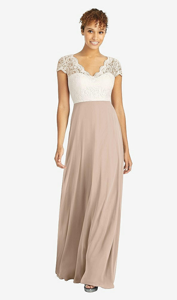 Front View - Topaz & Ivory Cap Sleeve Illusion-Back Lace and Chiffon Dress