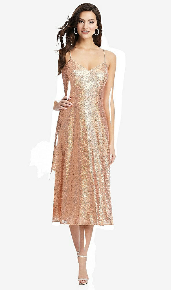 Spaghetti Strap Flared Skirt Sequin Midi Dress in Copper Rose
