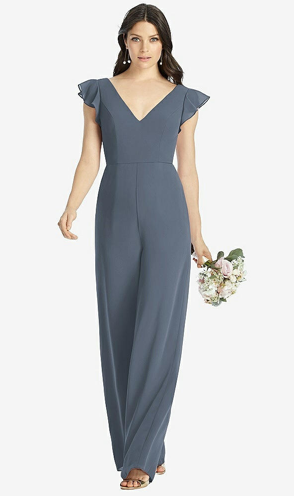 Ruffled Sleeve Low V-Back Jumpsuit - Adelaide in Silverstone