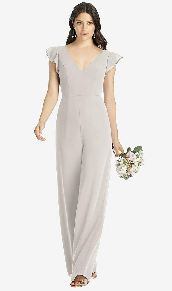Ruffled Sleeve Low V-Back Jumpsuit - Adelaide in Oyster