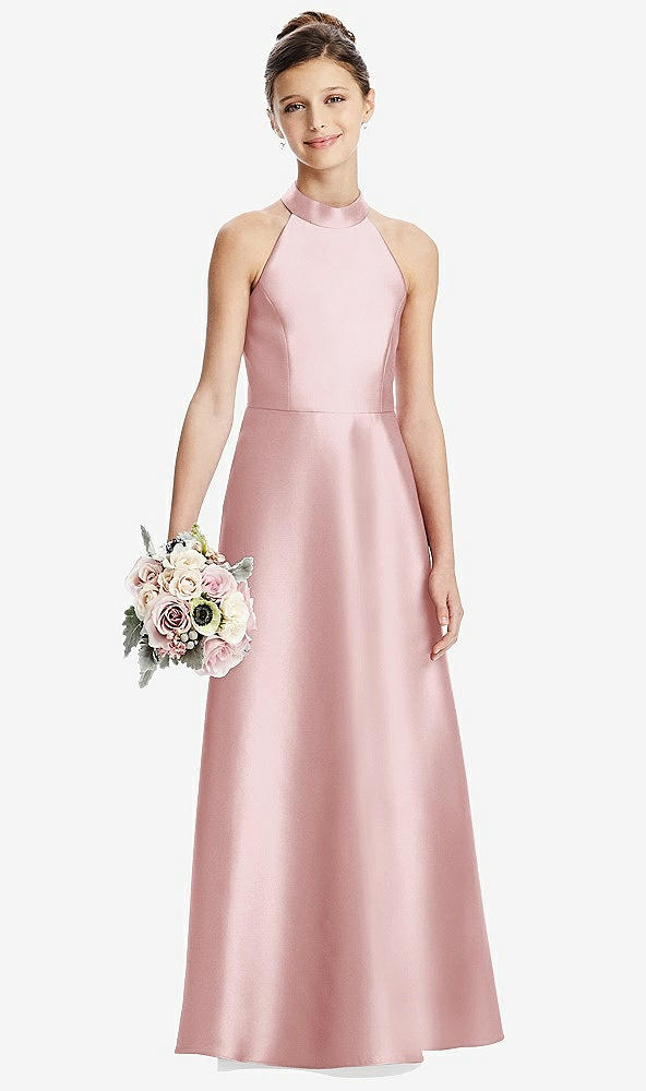 Front View Thumbnail - Ballet Pink Halter Open-back Satin Junior Bridesmaid Dress with Pockets