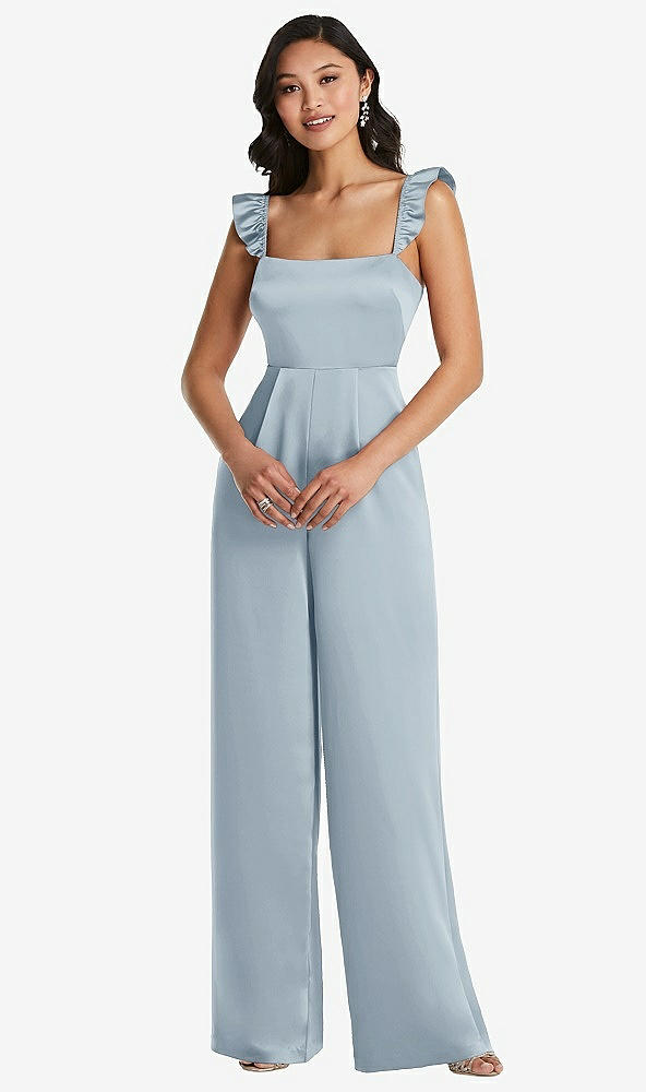 Ruffled Sleeve Tie-Back Jumpsuit with Pockets in Mist