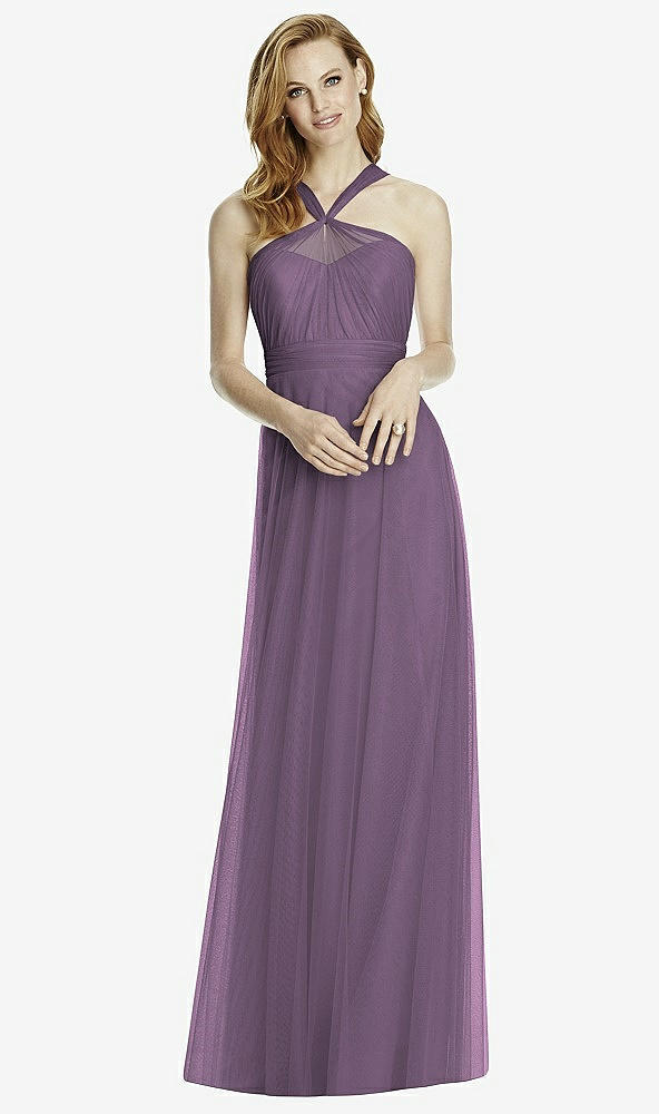 Create a flattering shape with the shirred bodice on this full-length bridesmaid dress. Featuring a twist front detail at the neckline, the soft tulle flows out into a playful circle skirt.
