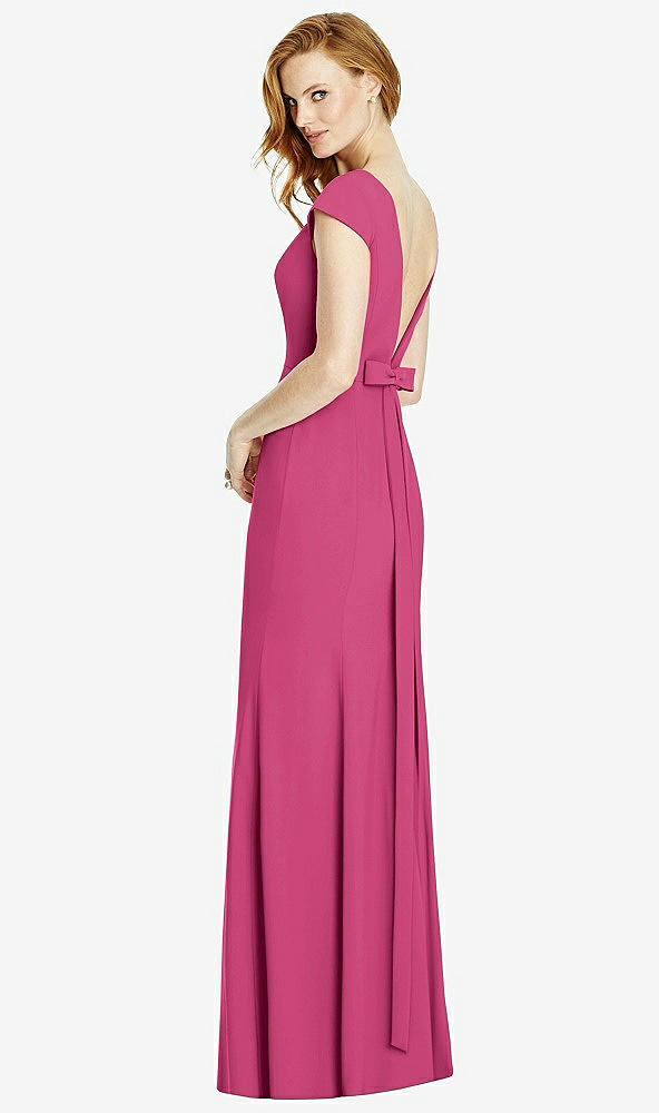 Back View - Tea Rose Bateau-Neck Cap Sleeve Open-Back Trumpet Gown