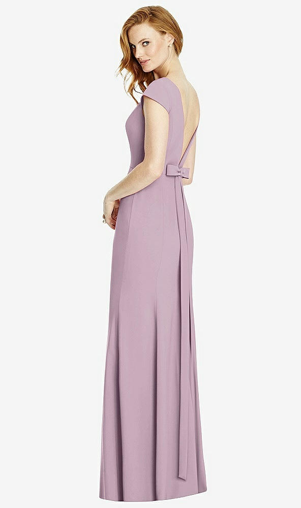 Back View - Suede Rose Bateau-Neck Cap Sleeve Open-Back Trumpet Gown