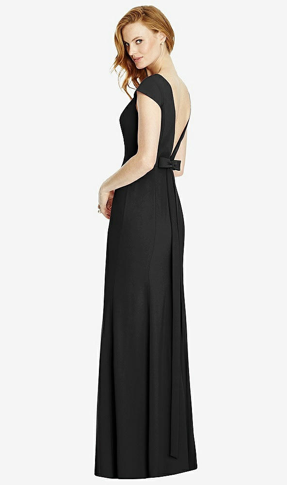 Back View - Black Bateau-Neck Cap Sleeve Open-Back Trumpet Gown