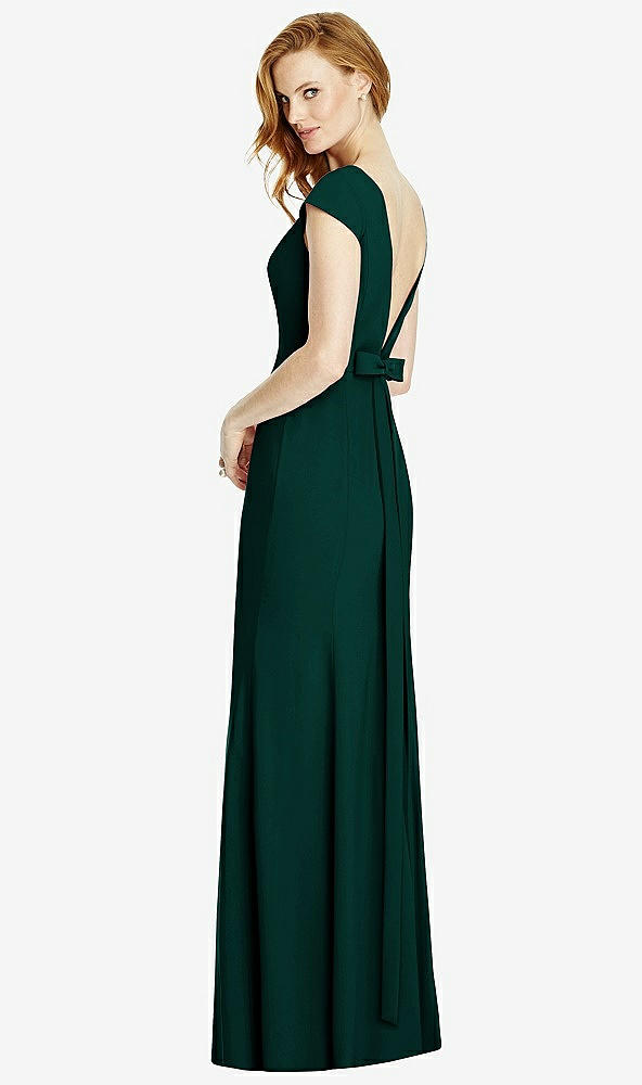 Back View - Evergreen Bateau-Neck Cap Sleeve Open-Back Trumpet Gown