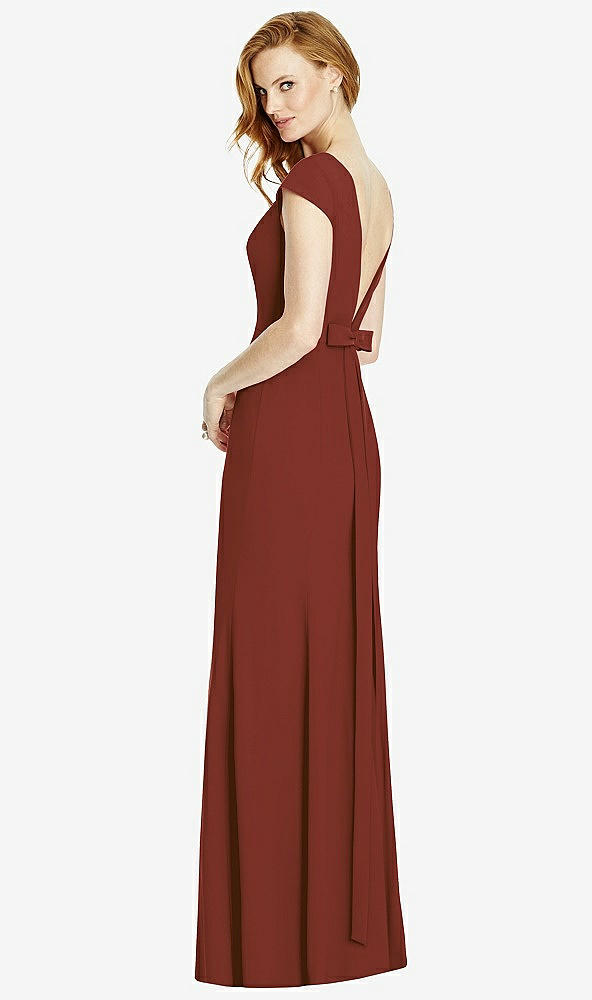 Back View - Auburn Moon Bateau-Neck Cap Sleeve Open-Back Trumpet Gown