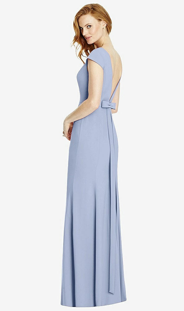 Back View - Sky Blue Bateau-Neck Cap Sleeve Open-Back Trumpet Gown