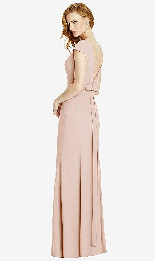 Back View - Cameo Bateau-Neck Cap Sleeve Open-Back Trumpet Gown