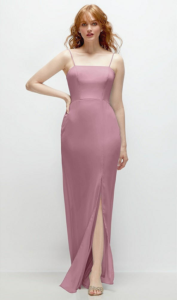 Tie-Back Cutout Trumpet Gown with Front Slit in Dusty Pink