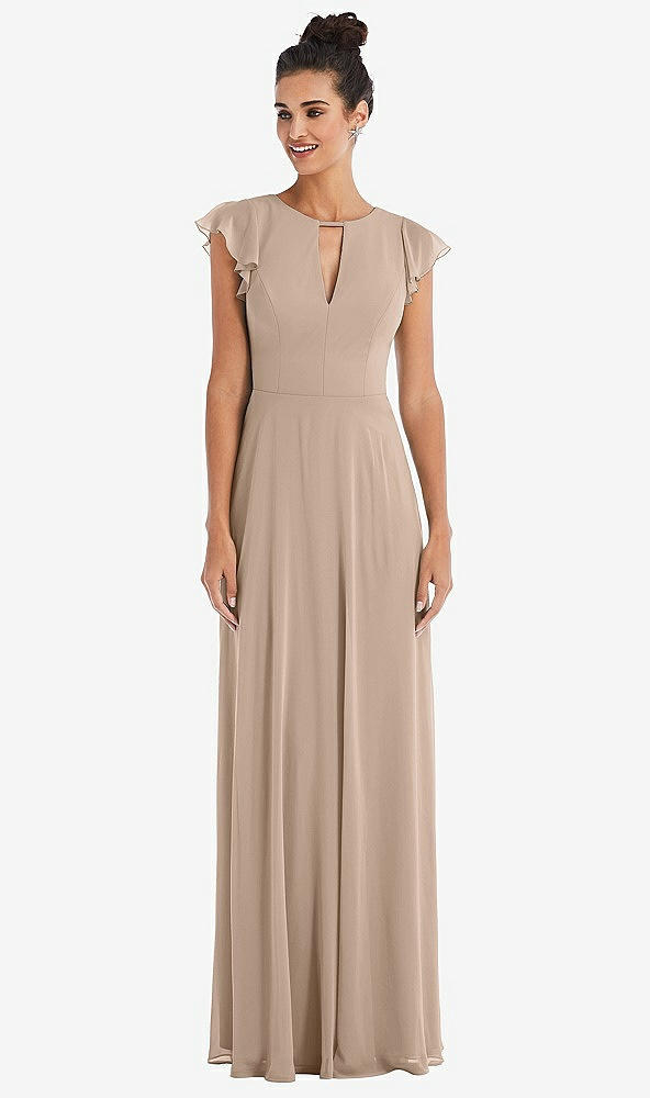 Front View - Topaz Flutter Sleeve V-Keyhole Chiffon Maxi Dress
