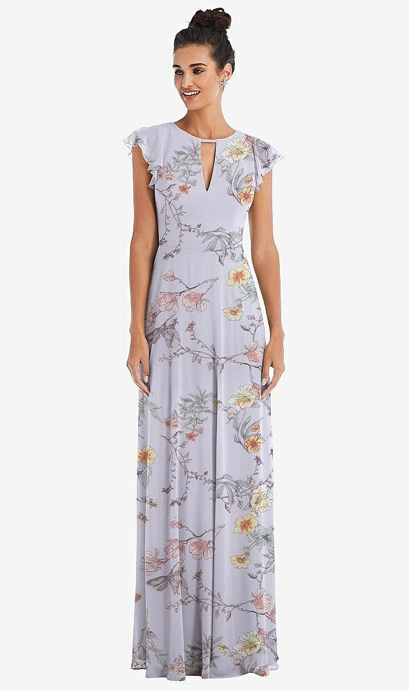 Flutter Sleeve V-Keyhole Chiffon Maxi Dress in Butterfly Botanica Silver Dove
