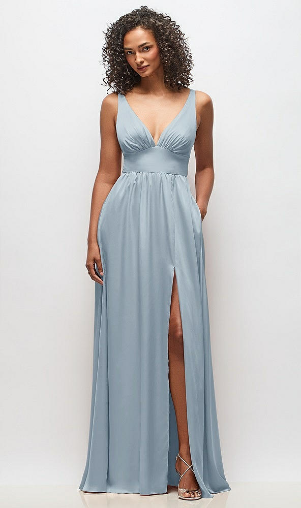 Deep V-Neck Shirred Skirt Maxi Dress with Convertible Straps in Mist