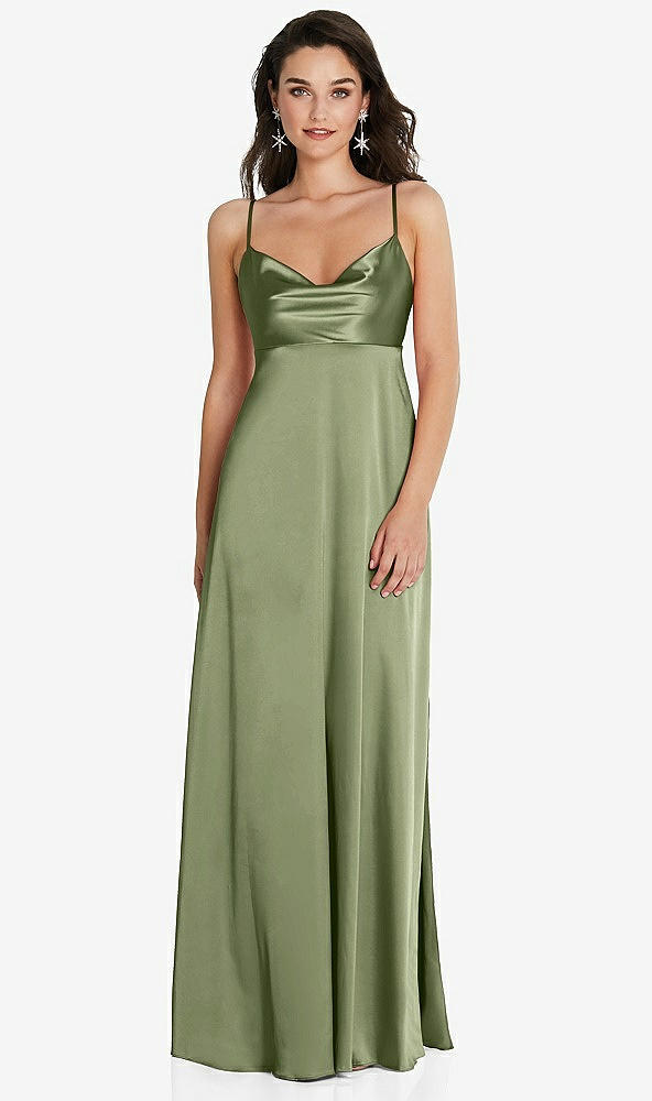 Cowl-Neck Empire Waist Maxi Dress with Adjustable Straps in Kiwi