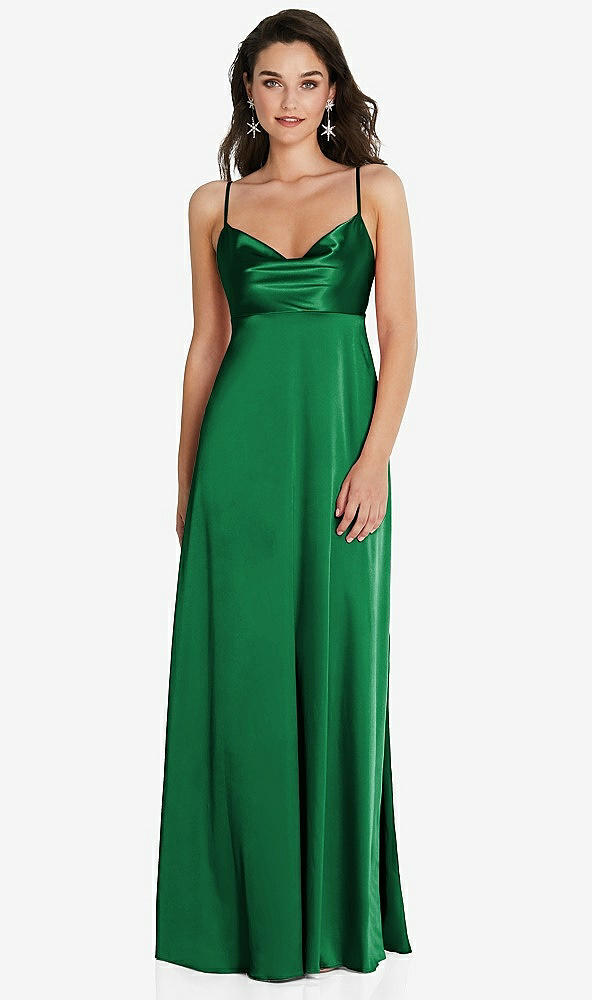 Cowl-Neck Empire Waist Maxi Dress with Adjustable Straps in Shamrock