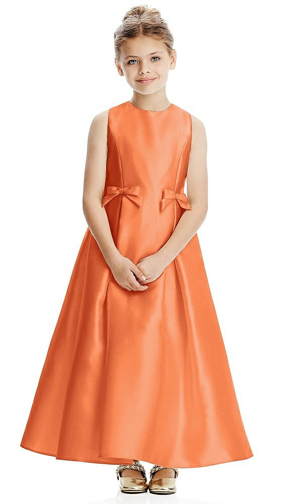 Princess Line Satin Twill Flower Girl Dress with Bows in Portofino Orange