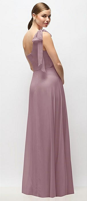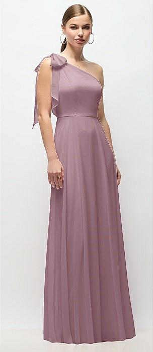 Draped One-Shoulder Maxi Dress with Scarf Bow in dusty rose