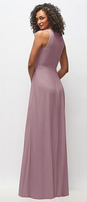 Sleeveless V-Neck Chiffon Wrap Dress in dusty rose