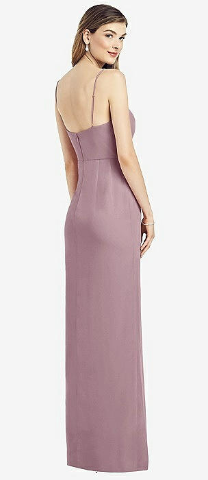 Spaghetti Strap Draped Skirt Gown with Front Slit