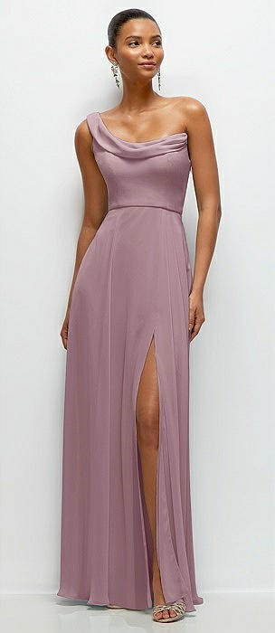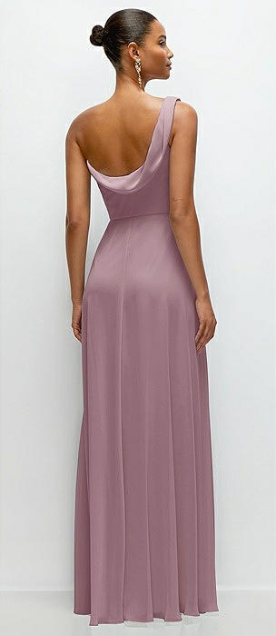 Chiffon One-Shoulder Maxi Dress with Draped Cowl Neckline in dusty rose