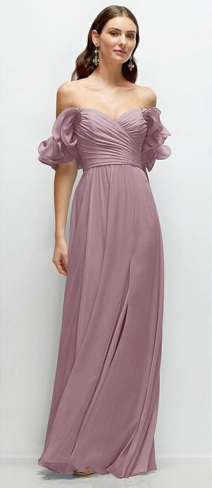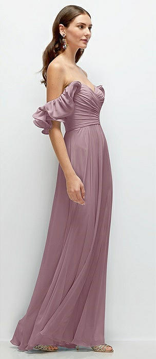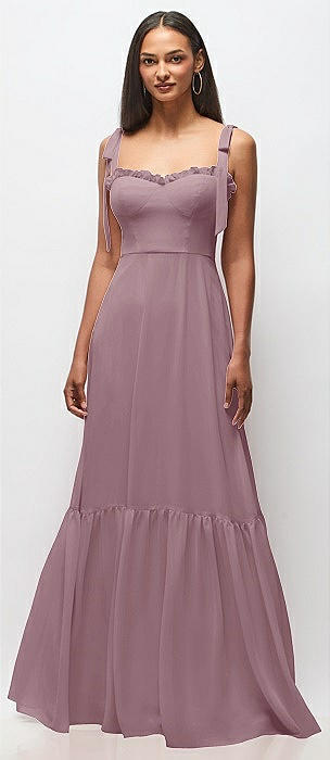 Ruffle Strap Chiffon Bustier Maxi Dress with Ruffle Hem A-Line Skirt in dusty rose