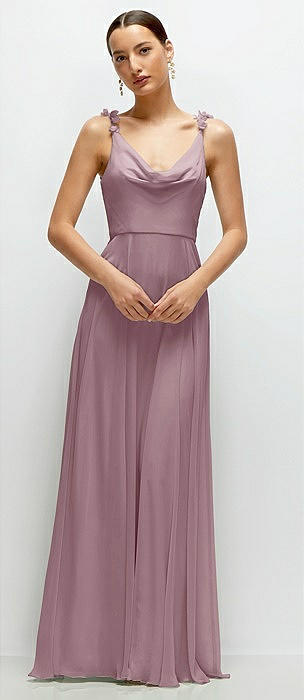 Cowl Neck Chiffon Maxi Dress with Hand-Worked Petal Straps in dusty rose