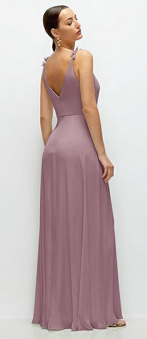 Plunge Neckline Bow Shoulder Empire Waist Chiffon Maxi Dress in dusty rose