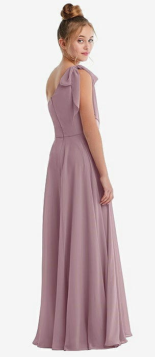 One-Shoulder Scarf Bow Chiffon Junior Bridesmaid Dress