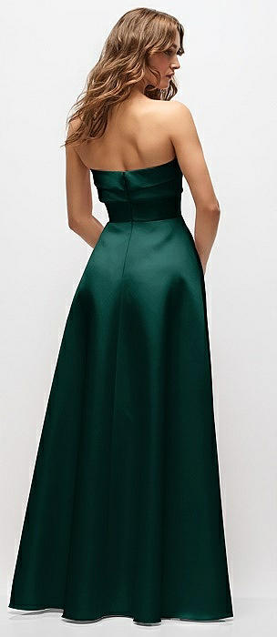 Strapless Draped Bodice Stretch Satin Column Maxi Dress in evergreen