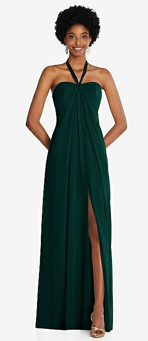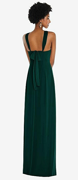 Draped Chiffon Grecian Column Gown with Convertible Straps in evergreen