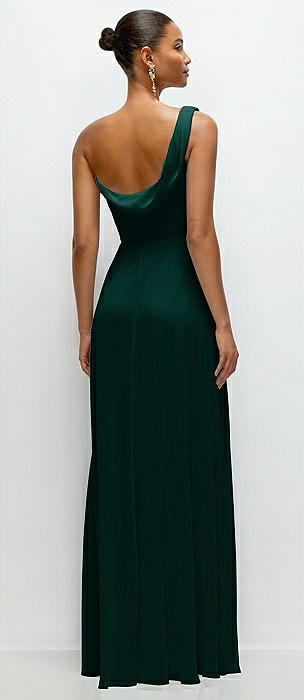 Chiffon One-Shoulder Maxi Dress with Draped Cowl Neckline in evergreen