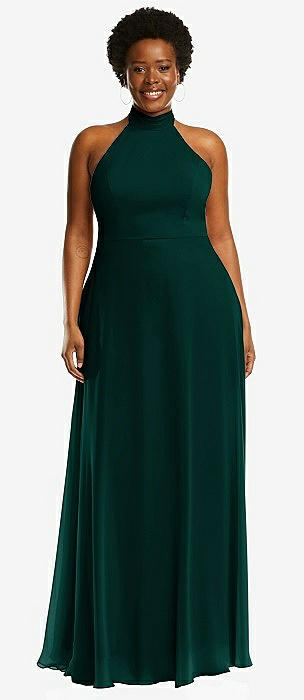 High Neck Halter Backless Maxi Dress in evergreen