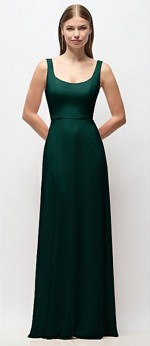 Scoop Neck Tank Strap Chiffon Maxi Dress in evergreen